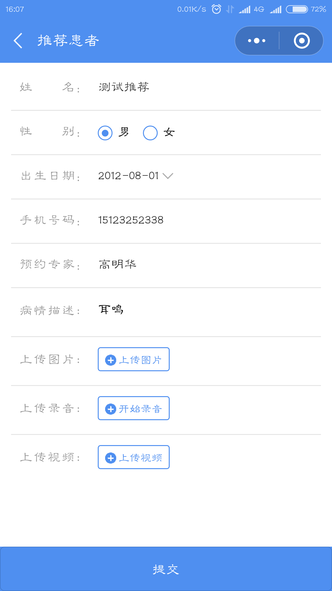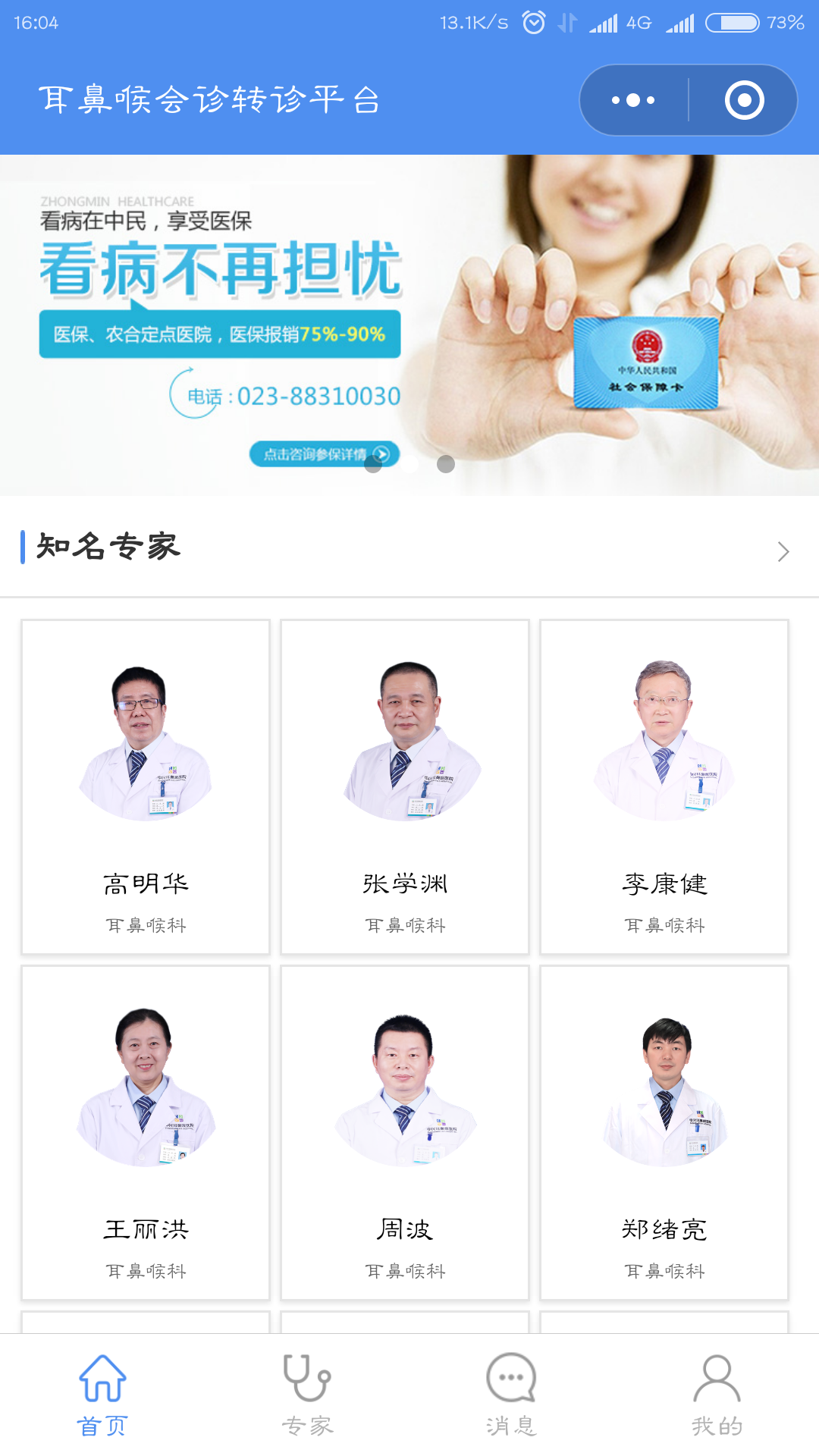 - 重慶很多區(qū)縣醫(yī)生收到不能治療的患者,可以通過小程序平臺(tái)推薦到本院,醫(yī)生可獲得消費(fèi)積分,同時(shí)區(qū)縣醫(yī)生可以通過平臺(tái)關(guān)注患者的診治情況。