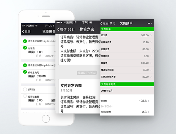 業(yè)主可直接通過(guò)微信端繳費(fèi)和查詢費(fèi)用明細(xì),報(bào)事報(bào)修、派工提醒、進(jìn)度查詢等,不僅減少了物業(yè)公司工作人員的工作量,也使得業(yè)主與物業(yè)公司的交互更簡(jiǎn)便,極大提高了業(yè)主滿意度,進(jìn)而進(jìn)一步解決物管企業(yè)收費(fèi)難的問(wèn)題。